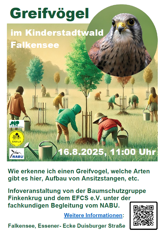 Zur Fertigstellung der Ansitzstangen und zu einem spannenden Samstagvormittag mit vielen Infos und Anschauungsmaterial rund um Greif- und andere Vögel sind alle Interessierten am 16. August 2025 ab 11:00 Uhr in den Kinderstadtwald eingeladen. Der renommierte Ornithologe Daniel Wendt vom NABU erklärt und beantwortet Fragen.