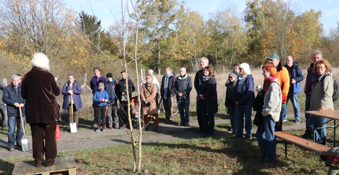 Nach der Pflanzung der 10 Jubiläumsbäume können gerne mitgebrachte Bäumchen aus dem eigenen Garten gepflanzt werden. Bitte denken Sie auch an Spaten, Gießkanne und wetterfeste Kleidung.